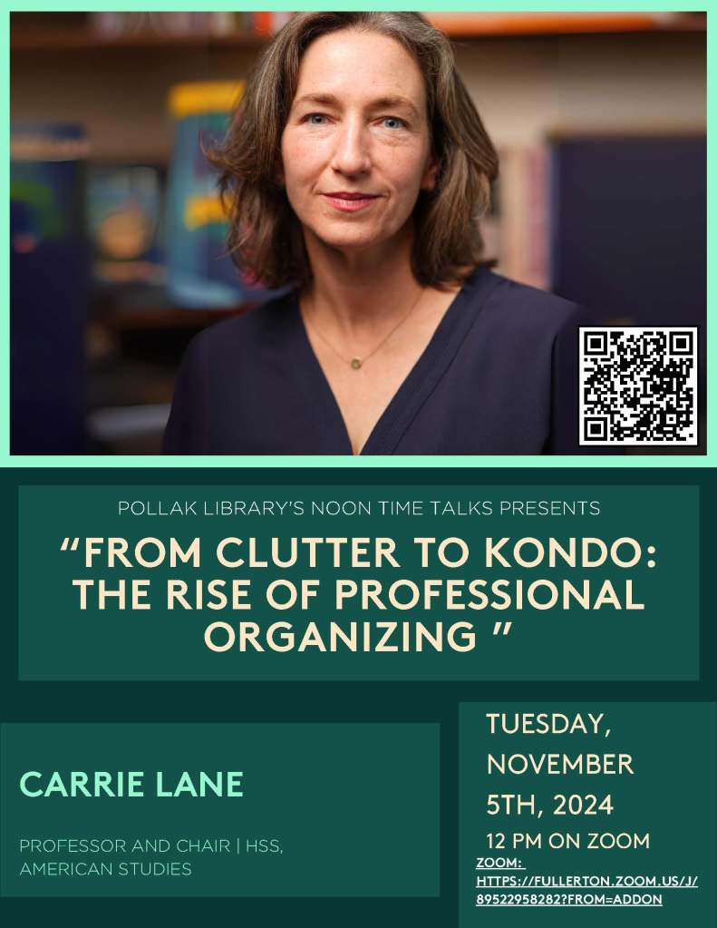 Pollak Library Noon Time Talk, “From Clutter to Kondo: The Rise of Professional Organizing,” November 2024.