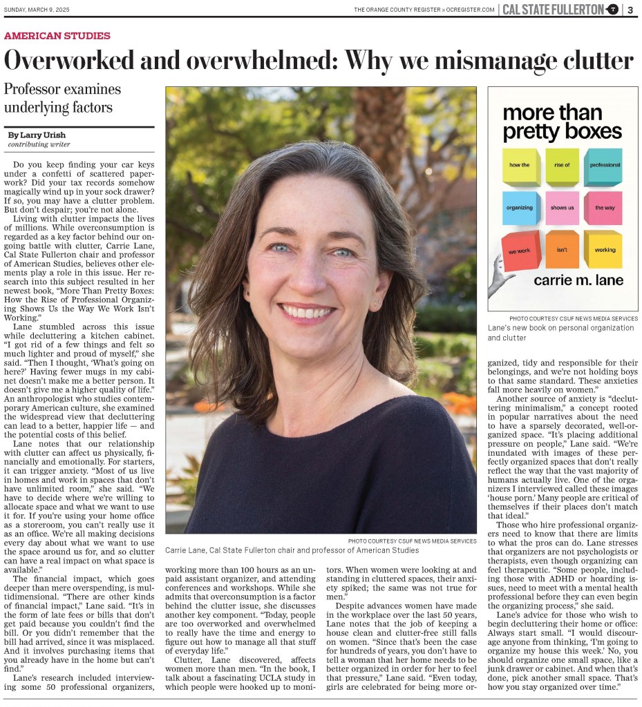 “What’s Motivating Us to Organize and Declutter?: Professor Explores Trends in New Book,” Orange County Register, February 8, 2024.